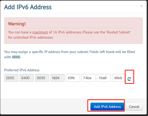 此时会弹出一个框,点击这个图标之后,选择Add IPv6 Address。