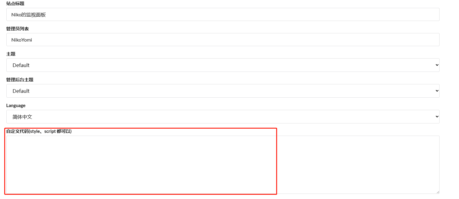 然后在当前界面的自定义代码框中输入以下代码,保存即可。