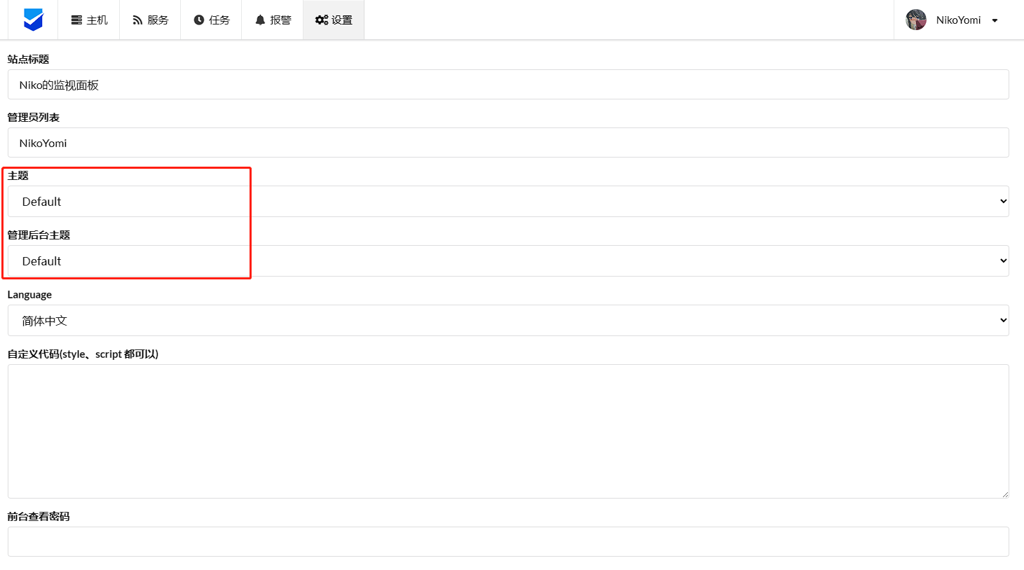 首先登录进哪吒面板后台,在设置界面将主题和后台主题设置为Default。